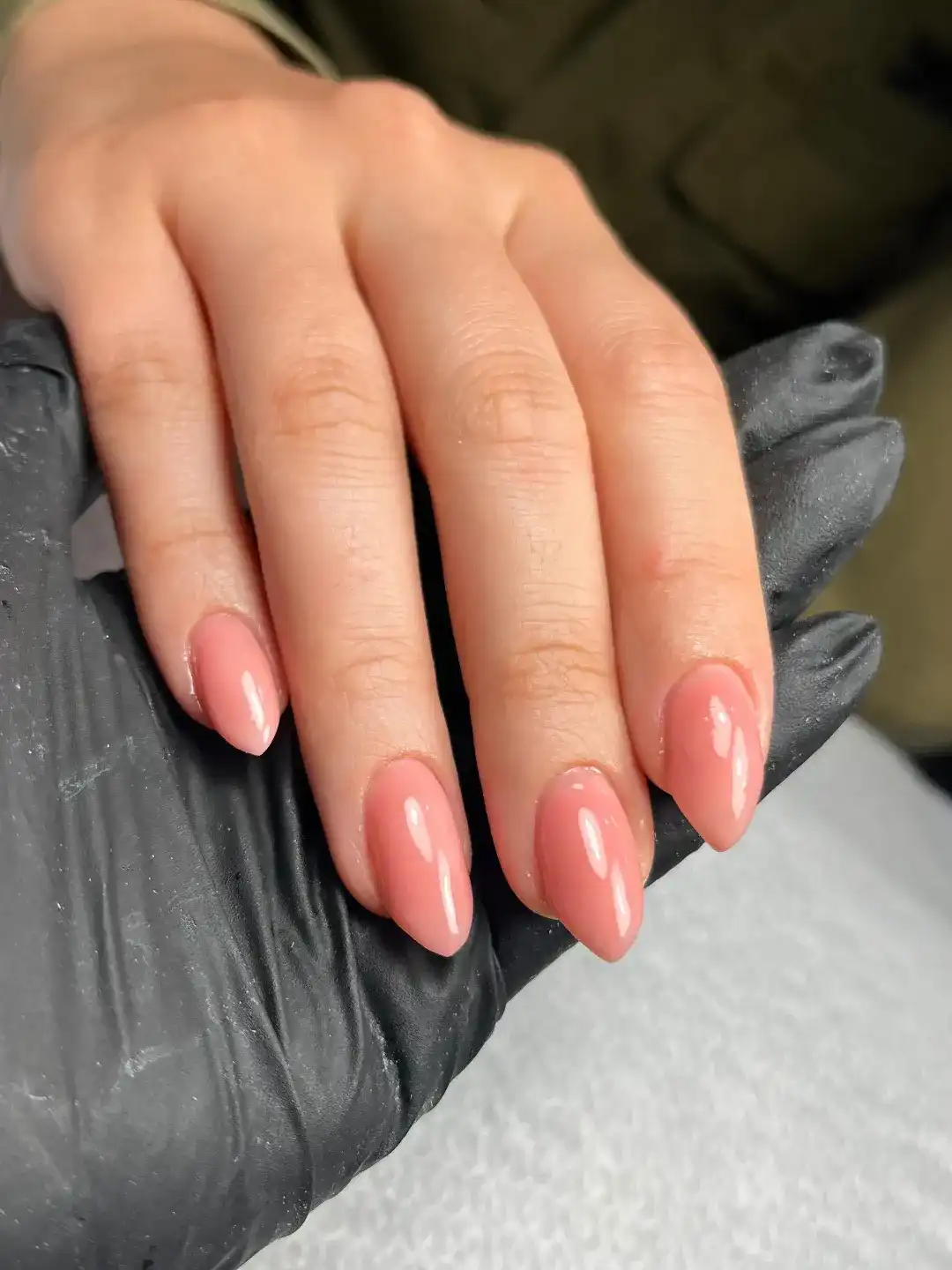 מניקור אלגנטי בגוון ניוד ורדרד למראה נקי ומעודן.