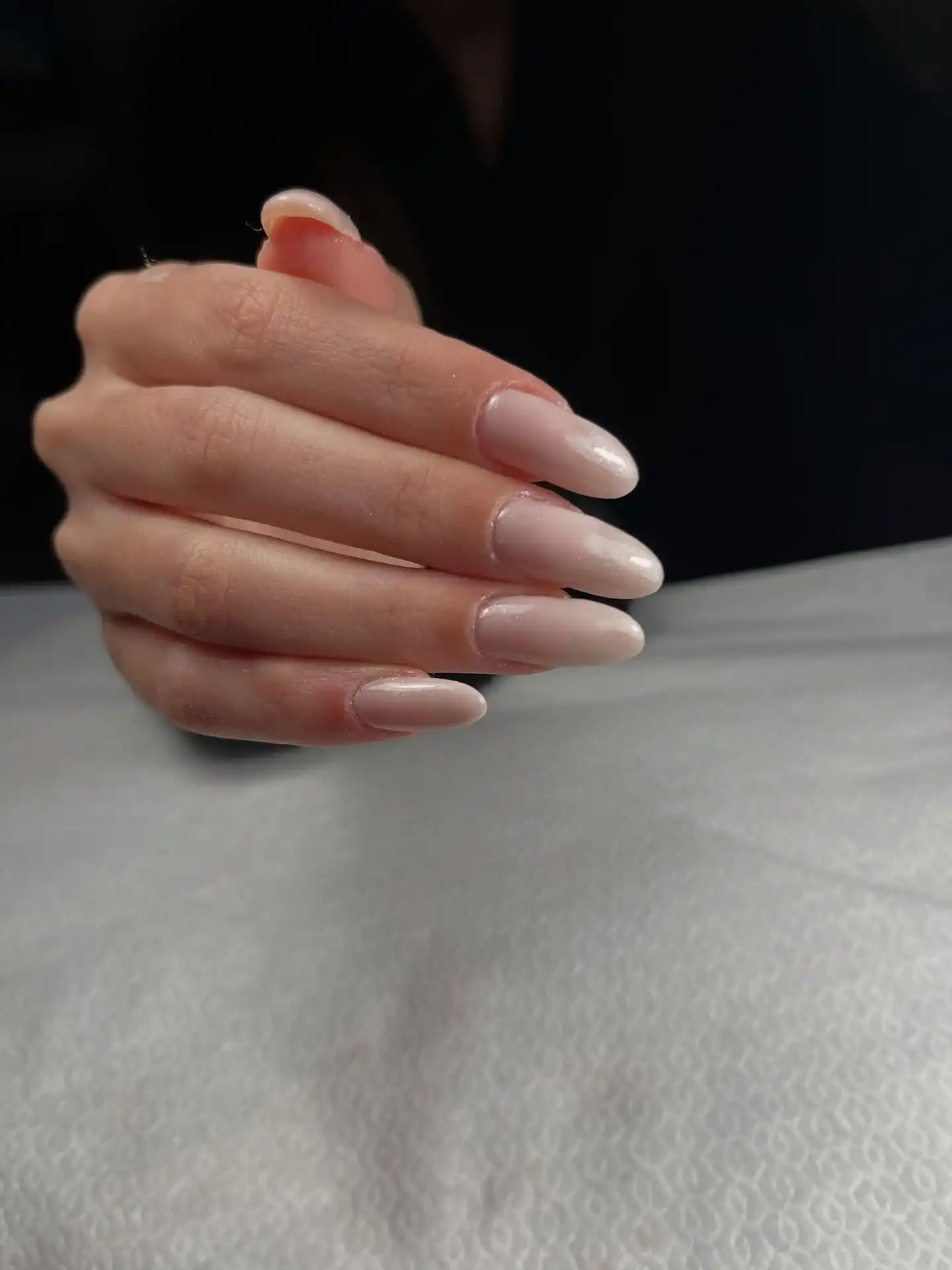 מניקור עדין בגוון ורוד חלומי למראה נקי ואלגנטי.